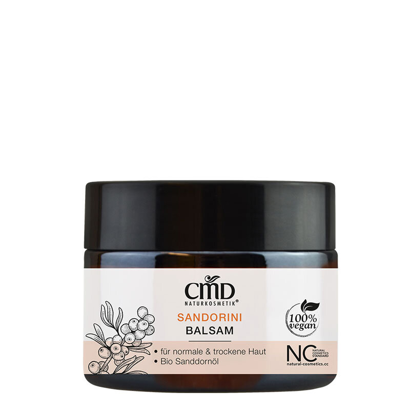Высококачественный и интенсивно питательный бальзам для кожи CMD Sandorini с маслом авокадо, органическим маслом облепихи и органическим маслом жожоба. Особенно подходит для очень сухих или шелушащихся участков кожи, таких как колени и локти.