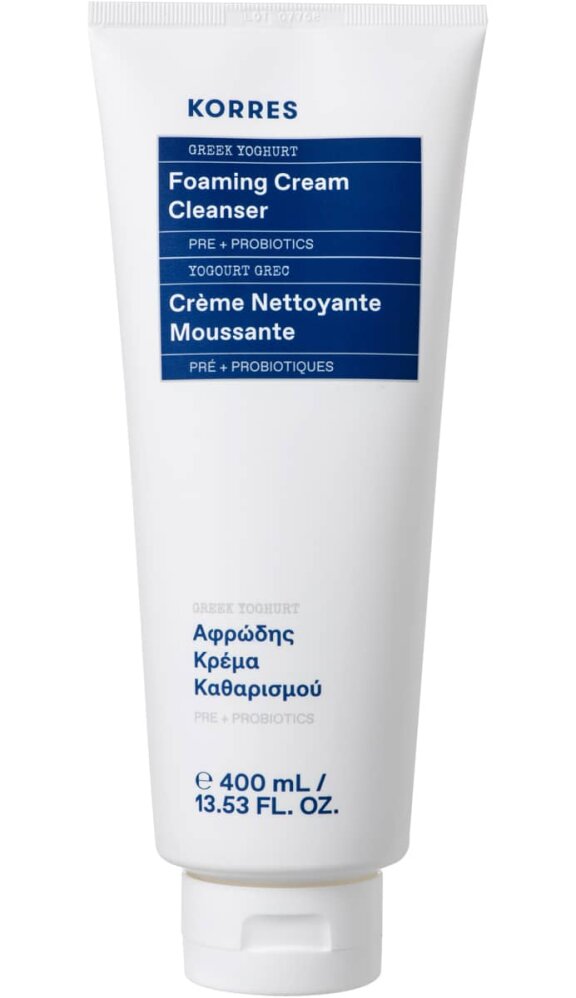 Этот очищающий крем без мыла, приятно пенящийся, содержит греческий йогурт — традиционный суперпродукт, успокаивающий кожу. Формула мягко, но эффективно удаляет загрязнения и остатки макияжа за один шаг, не раздражая кожу.