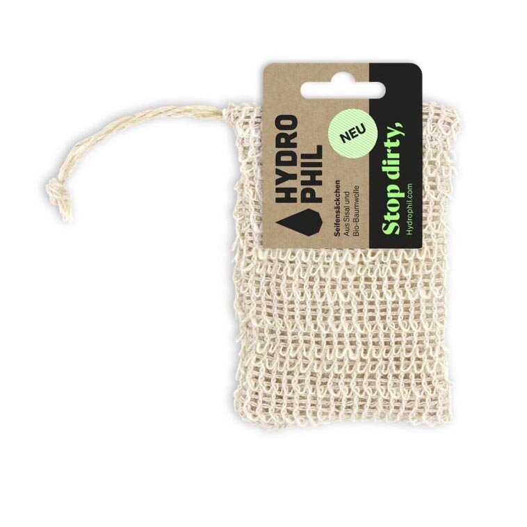 Мешочек идеально подходит для душа или умывания лица, так как мыло прекрасно пенится внутри. Но это еще не все: у нашего мешочка для мыла две разные стороны. Сторона из сизаля не только обеспечивает отшелушивающий эффект, удаляя отмершие клетки кожи, но и массирует ее.