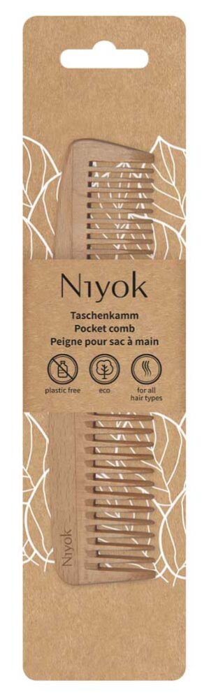 Удобная карманная расческа Niyok, изготовленная из бука, — идеальный экологичный спутник в дороге.