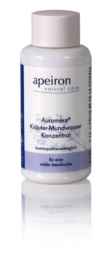 Концентрат травяного ополаскивателя для полости рта Auromère®, совместимый с гомеопатией содержит приятное масло мяты перечной без ментола и поэтому может использоваться также во время гомеопатического лечения.