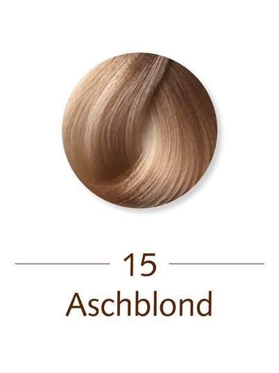 Farbpaste (Tube) 15 Aschblond:, Aqua, Cetearyl Alcohol, Ethanolamine, Polysorbate 80, Ceteareth-30, Sodium Lauryl Sulfate, Isopropyl Stearate, Propylene Glycol, Tetrasodium EDTA, Parfum, Ascorbic Acid, Sodium Hydrosulfite, Panicum Miliaceum Extract, Biotin, Calcium Pantothenate, Olea Europaea Leaf Extract, Vitis Vinifera Leaf Extract, Betula Alba Bark Extract, Urtica Dioica Leaf/Stem Juice, Limonene, Benzyl Alcohol, Benzyl Salicylate, Amyl Cinnamal, p-Phenylenediamine, 2-Methylresorcinol, 4-Chlororesorcinol, 2-Amino-4-Hydroxyethylaminoanisole Sulfate Fixiermittel (Flasche):, Aqua, Hydrogen Peroxide, Stearyl Alcohol, Cetearyl Ethylhexanoate, Ceteareth-50, Phosphoric Acid, Phenoxyethanol, Tetrasodium EDTA, Sodium Gluceptate, Disodium Pyrophosphate Revitalisierungsbalsam:, Aqua, Cetearyl Alcohol, Cetrimonium Chloride, Panicum Miliaceum Extract, Laurdimonium Hydroxypropyl Hydrolyzed Wheat Protein, Isopropyl Stearate, Calcium Pantothenate, Biotin, Citric Acid, Parfum, Phenoxyethanol, Benzyl Alcohol, Isoeugenol, Geraniol, Limonene, Benzyl Salicylate, Eugenol, Hydroxycitronellal, Linalool, Alpha-Isomethyl Ionone