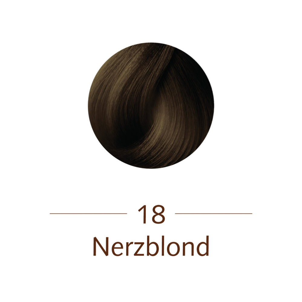 Farbpaste (Tube) 18 Nerzblond:, Aqua, Cetearyl Alcohol, Ethanolamine, Polysorbate 80, Ceteareth-30, Sodium Lauryl Sulfate, Isopropyl Stearate, Propylene Glycol, Tetrasodium EDTA, Parfum, Ascorbic Acid, Sodium Hydrosulfite, Panicum Miliaceum Extract, Biotin, Calcium Pantothenate, Olea Europaea Leaf Extract, Vitis Vinifera Leaf Extract, Betula Alba Bark Extract, Urtica Dioica Leaf/Stem Juice, Limonene, Benzyl Alcohol, Benzyl Salicylate, Amyl Cinnamal, p-Phenylenediamine, p-Aminophenol, 4-Chlororesorcinol, 2-Amino-4-Hydroxyethylaminoanisole Sulfate Fixiermittel (Flasche):, Aqua, Hydrogen Peroxide, Stearyl Alcohol, Cetearyl Ethylhexanoate, Ceteareth-50, Phosphoric Acid, Phenoxyethanol, Tetrasodium EDTA, Sodium Gluceptate, Disodium Pyrophosphate Revitalisierungsbalsam:, Aqua, Cetearyl Alcohol, Cetrimonium Chloride, Panicum Miliaceum Extract, Laurdimonium Hydroxypropyl Hydrolyzed Wheat Protein, Isopropyl Stearate, Calcium Pantothenate, Biotin, Citric Acid, Parfum, Phenoxyethanol, Benzyl Alcohol, Isoeugenol, Geraniol, Limonene, Benzyl Salicylate, Eugenol, Hydroxycitronellal, Linalool, Alpha-Isomethyl Ionone