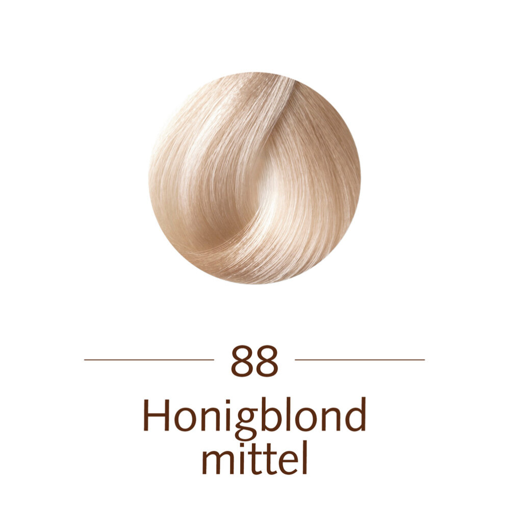 Farbpaste (Tube) 88 Honigblond Mittel:, Aqua, Cetearyl Alcohol, Ethanolamine, Polysorbate 80, Ceteareth-30, Sodium Lauryl Sulfate, Isopropyl Stearate, Propylene Glycol, Tetrasodium EDTA, Parfum, Ascorbic Acid, Sodium Hydrosulfite, Panicum Miliaceum Extract, Biotin, Calcium Pantothenate, Olea Europaea Leaf Extract, Vitis Vinifera Leaf Extract, Betula Alba Bark Extract, Urtica Dioica Leaf/Stem Juice, Limonene, Linalool, Toluene-2,5-Diamine Sulfate, p-Aminophenol, m-Aminophenol, 4-Chlororesorcinol Fixiermittel (Flasche):, Aqua, Hydrogen Peroxide, Stearyl Alcohol, Cetearyl Ethylhexanoate, Ceteareth-50, Phosphoric Acid, Phenoxyethanol, Tetrasodium EDTA, Sodium Gluceptate, Disodium Pyrophosphate Revitalisierungsbalsam:, Aqua, Cetearyl Alcohol, Cetrimonium Chloride, Panicum Miliaceum Extract, Laurdimonium Hydroxypropyl Hydrolyzed Wheat Protein, Isopropyl Stearate, Calcium Pantothenate, Biotin, Citric Acid, Parfum, Phenoxyethanol, Benzyl Alcohol, Isoeugenol, Geraniol, Limonene, Benzyl Salicylate, Eugenol, Hydroxycitronellal, Linalool, Alpha-Isomethyl Ionone