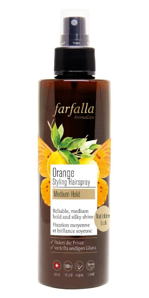 Эфирное масло успокаивающего апельсина поднимает настроение и улучшает самочувствие. Идеальный аромат для подготовки и создания образа к новому дню. Спрей обеспечивает надежную фиксацию и шелковистый блеск.