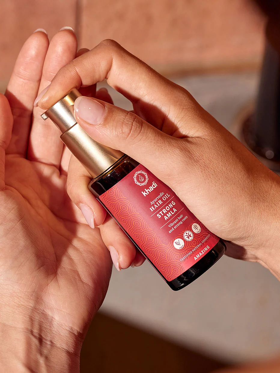 Почувствуйте силу уникальной аюрведической смеси индийских трав: Амла, индийский крыжовник, богатый антиоксидантами, традиционно борется с выпадением волос и преждевременным поседением, стимулируя выработку меланина. Священный базилик (Тулси), Брахми и Брингарадж укрепляют корни, усиливают структуру волос и способствуют их росту. С каждым применением Strong Amla обволакивает и укрепляет ваши волосы изнутри. Ощутите глубокое питание и наслаждайтесь сильными корнями, густыми волосами и стойким объемом. Аюрведа издавна использует масло для волос, чтобы восстанавливать волосы изнутри и обеспечивать их длительную красоту. Восстановите естественную силу ваших волос с Strong Amla!