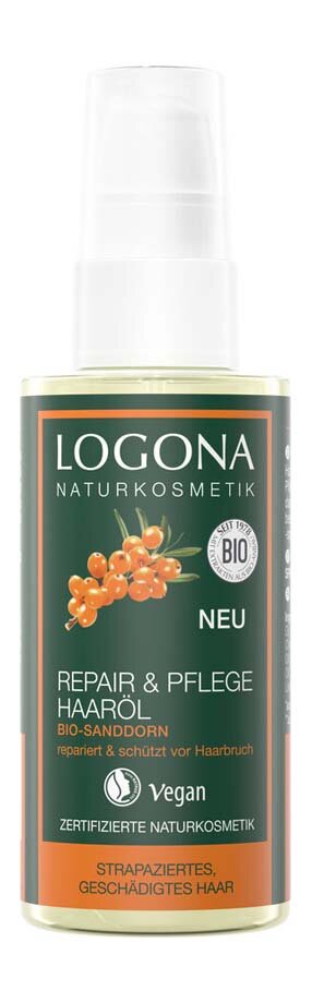 Масло для восстановления и ухода за волосами LOGONA восстанавливает ломкие волосы и кондиционирует волосяные волокна. Богатая, веганская формула натурального происхождения с органической облепихой интенсивно питает волосы и придает им гладкость и блеск, не утяжеляя их.