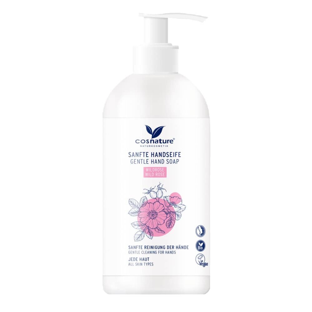 Мягкое мыло для рук cosnature® «Дикая роза» с нежными очищающими компонентами бережно и тщательно очищает руки. Формула с ценным органическим маслом семян дикой розы и органическим алоэ вера раскрывает нежный цветочный аромат и оставляет ощущение чистоты на коже.