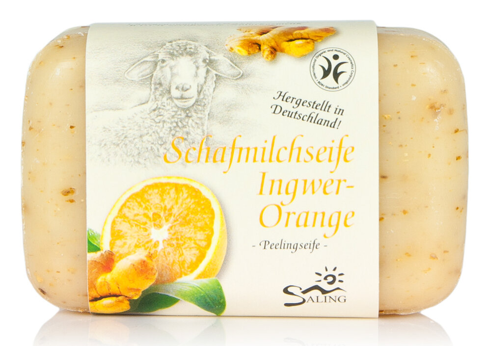 Отшелушивающее мыло на основе овечьего молока. С питательными ингредиентами, такими как пальмовое масло, кокосовое масло, ланолин и сухое овечье молоко. Насладитесь свежим ароматом натуральных эфирных масел имбиря и апельсина.