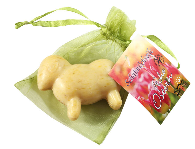 Мыло из овечьего молока с календулой в мешочке из органзы, сертифицировано BDIH.