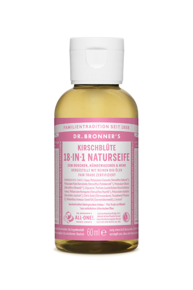 Сладкий цветочный аромат вишневых цветов очаровывает и пробуждает весеннее настроение. Натуральное мыло Dr. Bronner's 18-в-1 с ароматом вишневых цветов содержит смесь органических кокосового, оливкового, пальмоядрового, конопляного и жожобового масел и обогащено натуральным ароматом вишневых цветов.