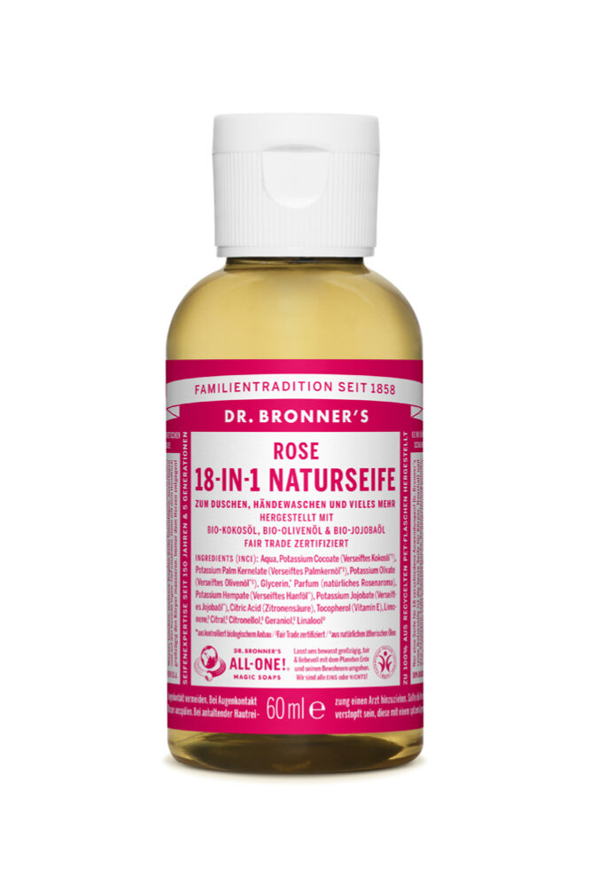 Aqua, Potassium Cocoate (Verseiftes Kokosöl°), Potassium Palm Kernelate (Verseiftes Palmkernöl°), Potassium Olivate (Verseiftes Olivenöl°), Glycerin, Parfum (natürliches Rosenaroma), Potassium Hempate (Verseiftes Hanföl), Potassium Jojobate (Verseiftes Jojobaöl), Citric Acid (Zitronensäure), Tocopherol (Vitamin E), Limonene, Citral, Citronellol, Geraniol, Linalool ° Fair Trade zertifiziert aus kontrolliert biologischem Anbau aus natürlichen ätherischen Ölen