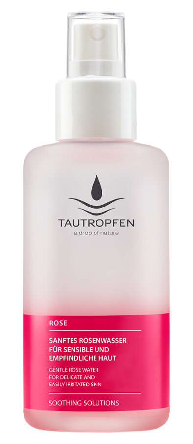 Нежная розовая вода Tautropfen Освежающая. Питательная. Бодрящая. Нежная розовая вода Tautropfen — это успокаивающее средство для чувствительной и нежной кожи. Полученная из собранных вручную цветов дамасской розы, эта высококачественная органическая розовая вода обеспечивает естественное освежение и нежный уход за лицом и телом.