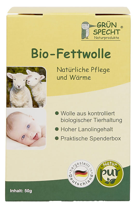 Шерсть Grünspecht, богатая органическим ланолином, обеспечивает естественный уход и тепло. Она успокаивает потрескавшиеся соски, кожу малыша и чувствительную кожу. Поставляется в удобной коробке-диспенсере.