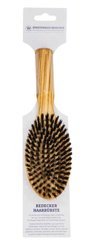 Расческа из вощеного оливкового дерева с черной кабаньей щетиной. 9 рядов. Размер: 22 см. Подходит для длинных волос.