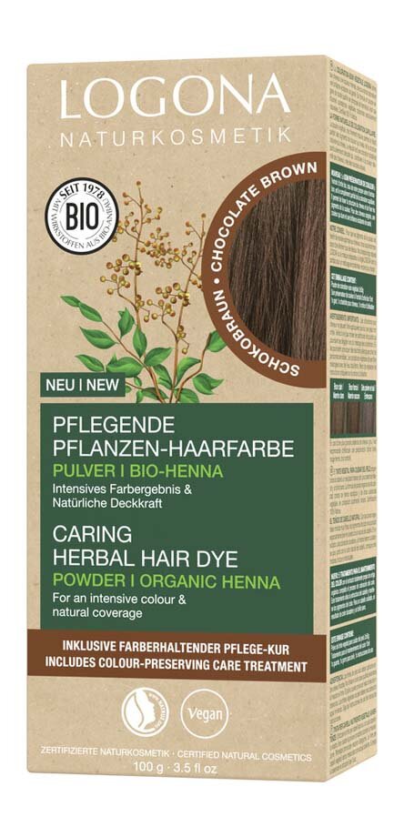 Питательная растительная краска для волос LOGONA обеспечивает интенсивный цвет, естественное покрытие и здоровый блеск.