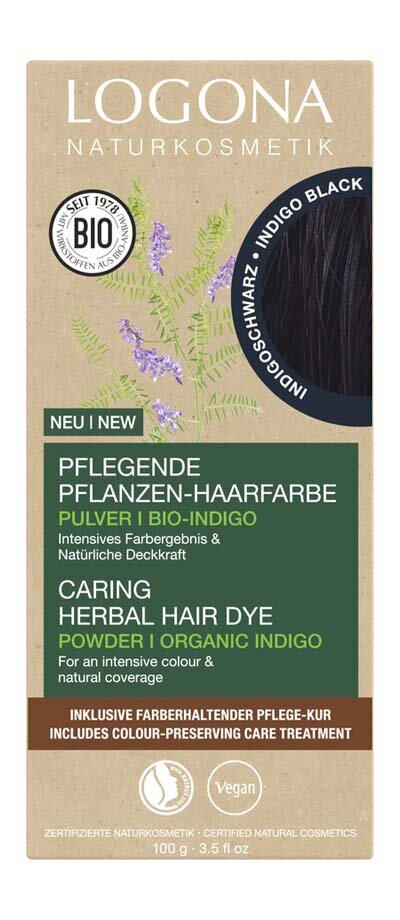 Питательная растительная краска для волос LOGONA обеспечивает интенсивный цвет, естественное покрытие и здоровый блеск.