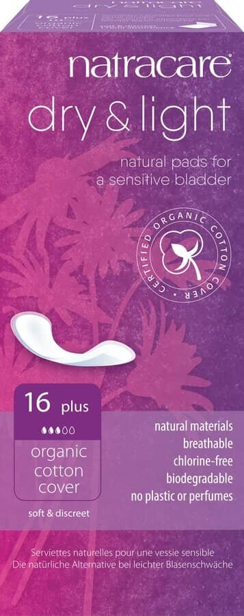 Гигиенические прокладки Natracare Dry & Light Incontinence Pad PLUS — это более впитывающие прокладки для стрессового недержания мочи и легкой слабости мочевого пузыря, обеспечивающие дополнительную защиту.