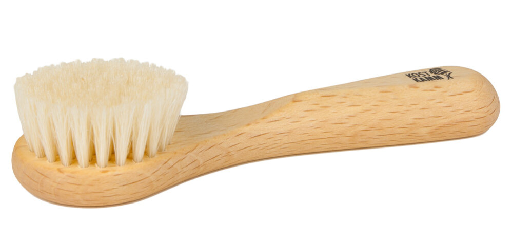 Щетка для лица из бука. Длина около 15 см. Имеет короткую ручку и особенно подходит для отшелушивания кожи лица, а также для интенсивного массажа. Мягкие щетинки бережно ухаживают за кожей и удаляют отмершие клетки.