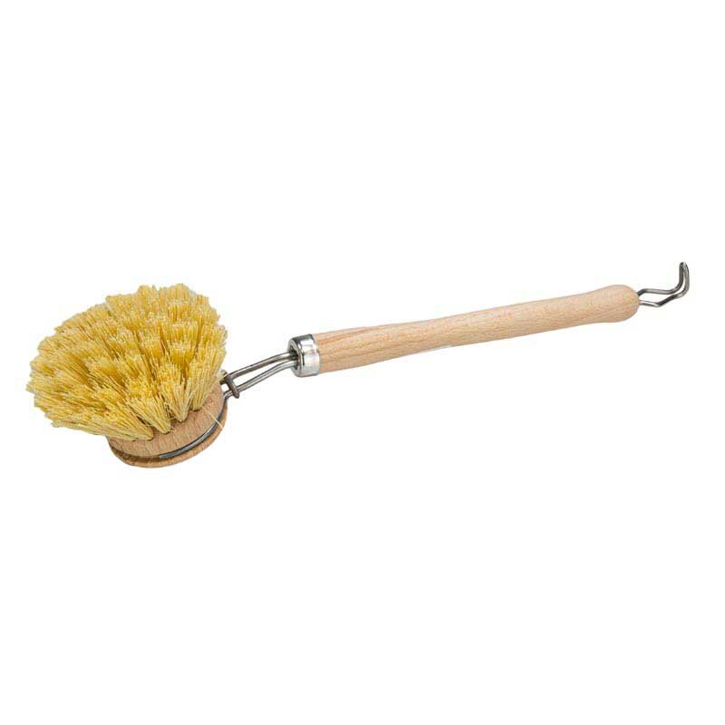 Щетка для мытья посуды из необработанной буковой древесины с ворсом из волокна (диаметр 5 см). Для быстрой и тщательной очистки тарелок и чашек. Также идеально подходит для кастрюль и сковородок.