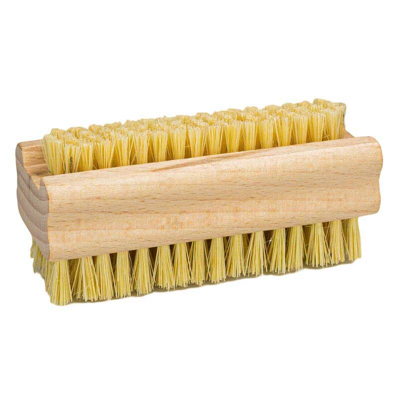 Щетка для ногтей из необработанной буковой древесины с ворсом из волокна/синтетических волокон. Размер приблизительно 9,5 x 3,6 см.