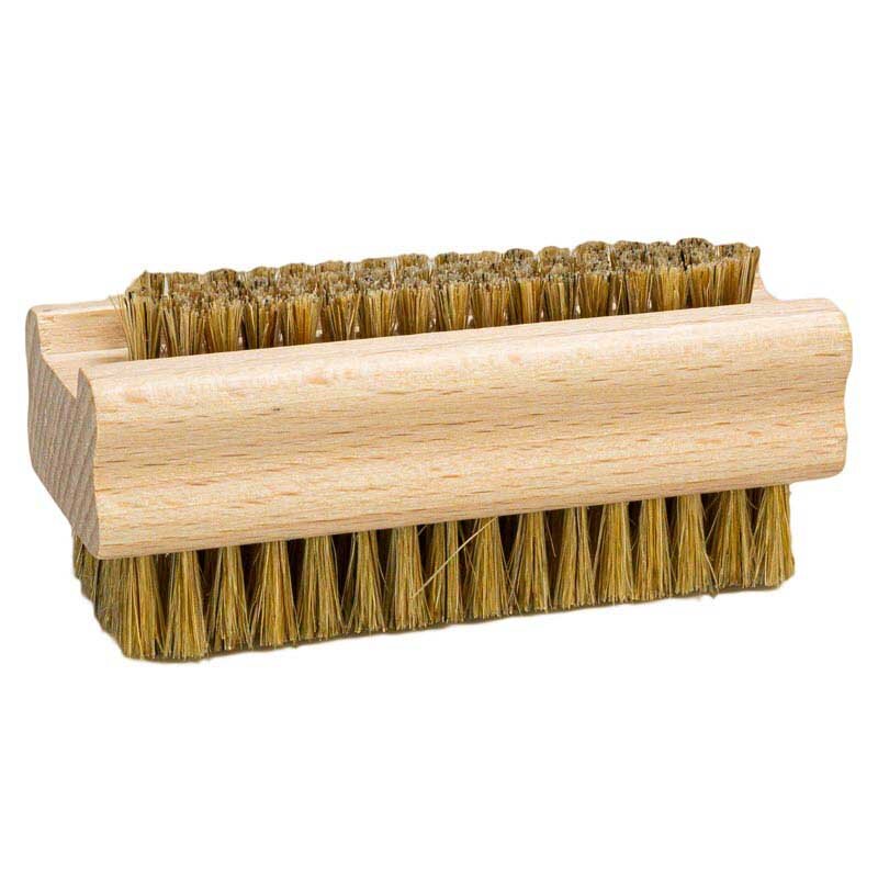 Щеточка для ногтей из необработанной буковой древесины со светлой щетиной. Размер приблизительно 9,5 x 3,6 см.