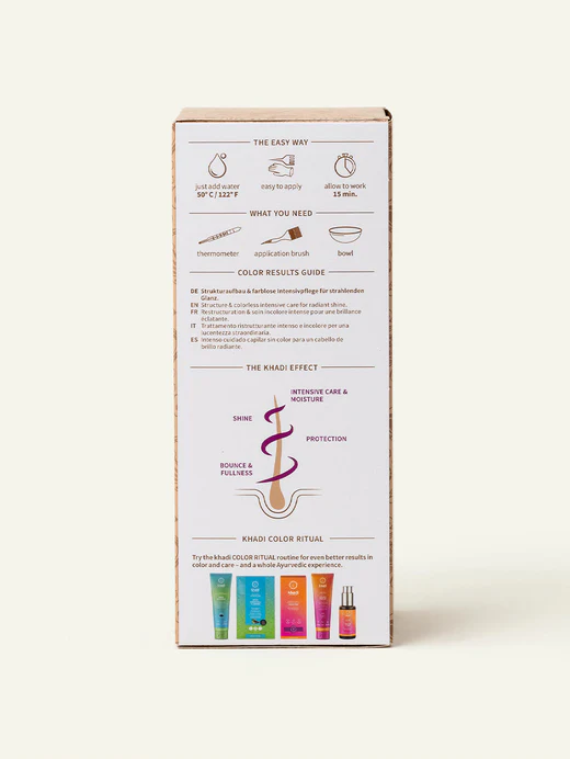 Средство khadi Colorless Care Senna/Cassia восстанавливает незначительные повреждения, увлажняет и подчеркивает красоту вашего естественного цвета волос. Результаты зависят от вашего натурального цвета и текстуры волос.