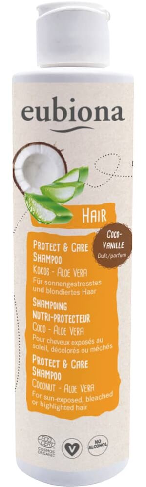 Кокосовое масло, алоэ вера и протеин пшеницы питают, восстанавливают, увлажают и защищают волосы, поврежденные солнцем и обесцвеченные. Мягкие поверхностно-активные вещества из возобновляемых ресурсов бережно очищают волосы.