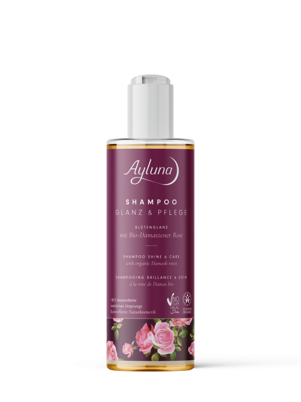 Нежная, чувственная пена, тонкий аромат розы и традиционные растительные секреты: шампунь Shine and Care Floral Shine с органической дамасской розой дарит каждой пряди шелковистую свежесть. Идеально подходит для ежедневного мытья. Укрепляет корни волос, мягко очищает, не пересушивая волосы. Также подходит для наращенных волос. Не содержит силикона/парафина, синтетических красителей и отдушек. Органический, веганский, халяльный.
