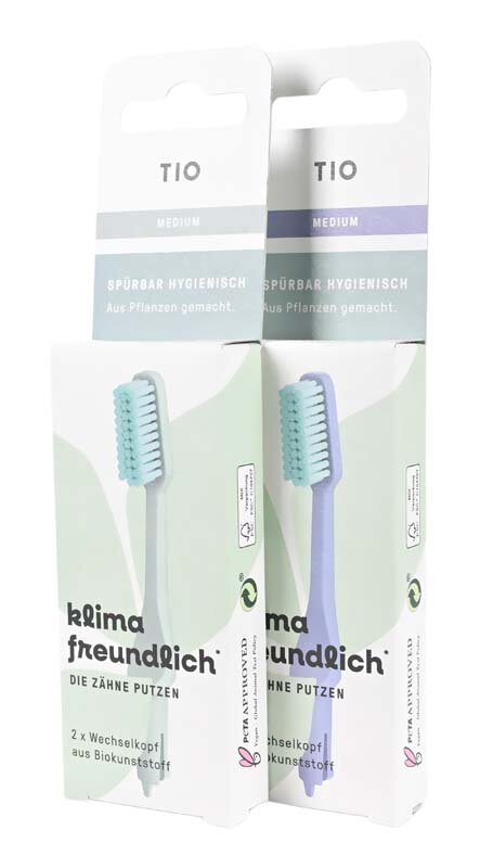 Сменные насадки для зубных щеток TIO изготовлены из биопластика и щетины, полученной из касторового масла. Заметно гигиеничны, изготовлены из растительных компонентов. В комплекте две сменные насадки. Насадки доступны в двух разных цветах.