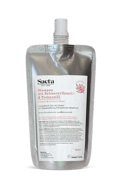 Шампунь Saeta с маслом черного тмина и чайного дерева подходит для сухой, зудящей кожи головы и является настоящим лечебным шампунем.