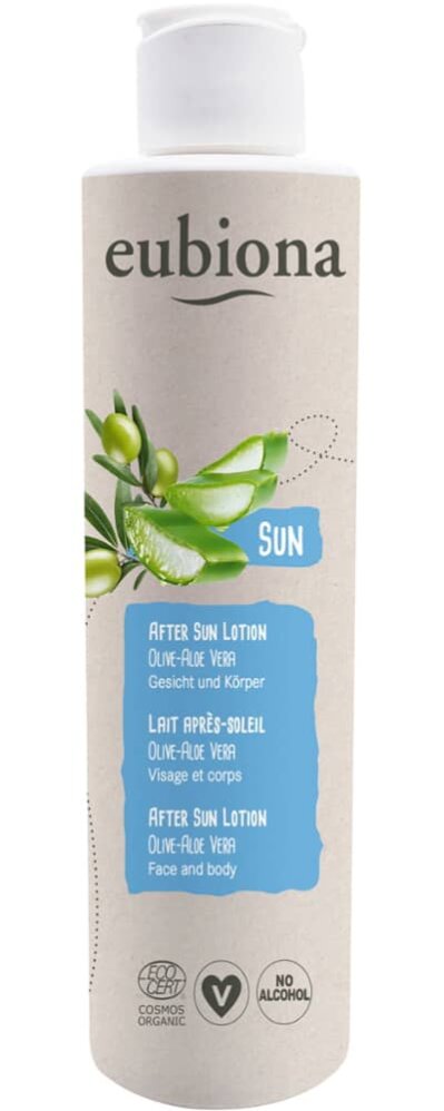 Оливковое масло, обладающее антиоксидантными и успокаивающими свойствами, и алоэ вера, охлаждающее и увлажняющее, идеально подходят для ухода за кожей, пострадавшей от солнца. Нанесите на кожу после пребывания на солнце и нежно помассируйте.