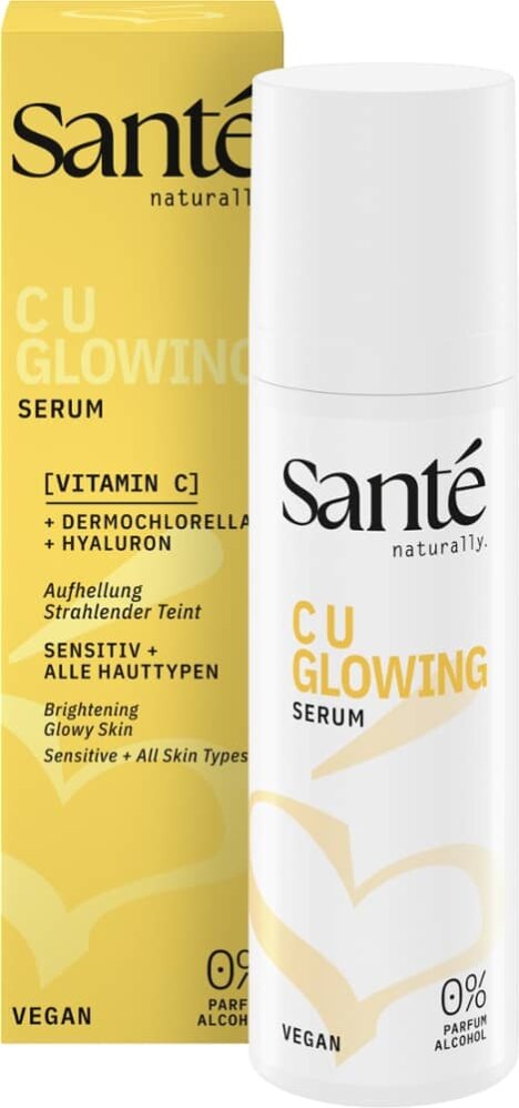 Сыворотка C U Glowing Serum от SANTÉ придает коже сияние и мгновенный эффект «пробуждения». Благодаря высокоэффективному витамину С, дермохлорелле и гиалуроновой кислоте, сыворотка интенсивно питает кожу, увлажняет и поддерживает регенерацию клеток.