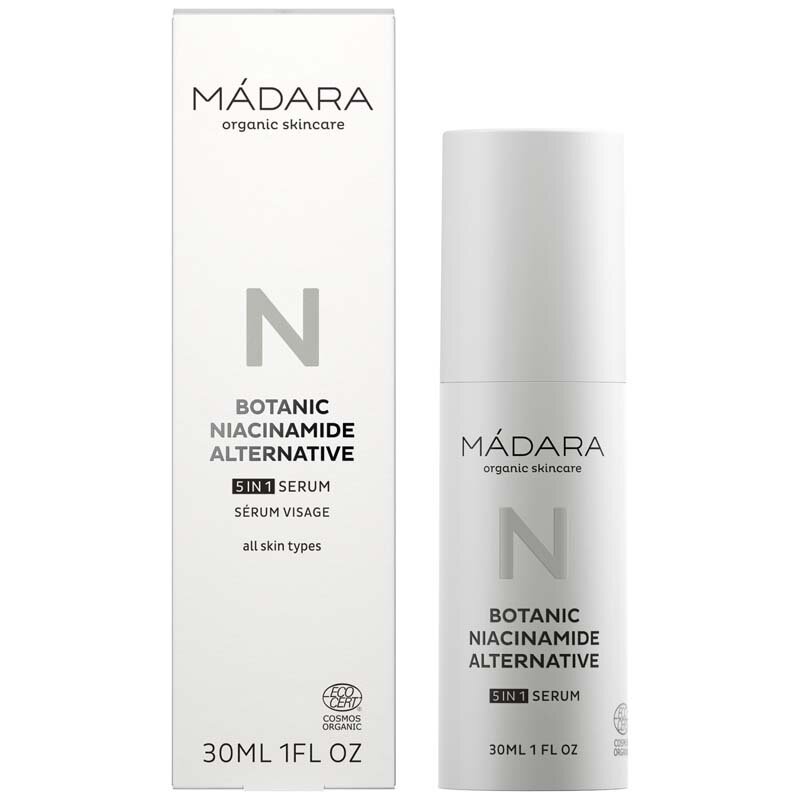 Сыворотка 5-в-1 с растительным ниацинамидом. Мощный натуральный альтернативный комплекс ниацинамида с балансирующими экстрактами водорослей и розового мирта улучшает внешний вид жирной и проблемной кожи.