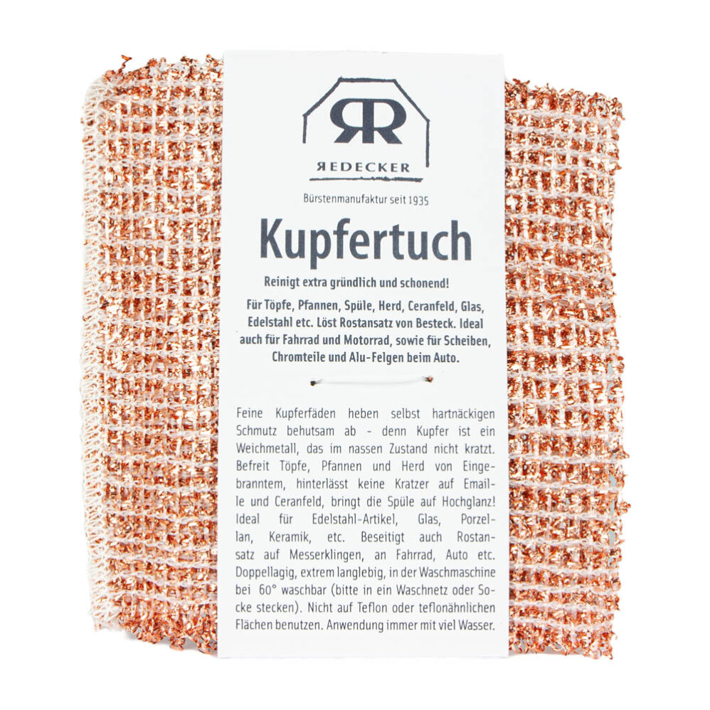 Тонкие медные нити бережно удаляют даже самые стойкие загрязнения – ведь медь – мягкий металл, который не царапается во влажном состоянии. Не оставляет царапин на эмалированных или керамических варочных поверхностях и придаст вашей раковине блеск! Не использовать на тефлоновых или тефлоноподобных поверхностях.