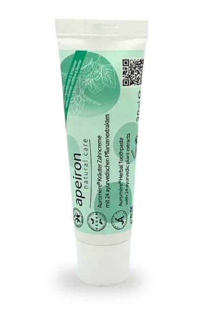 Удобный 20-миллилитровый тюбик аюрведической травяной зубной пасты Auromère обеспечивает естественный уход за полостью рта, где бы вы ни находились. Мягкая травяная формула тщательно очищает, освежает дыхание и ухаживает за деснами – и все это без добавления фтора.