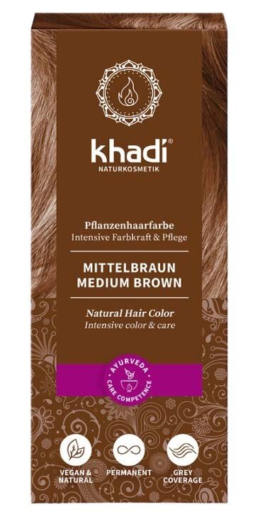 Естественный и сияющий – khadi Medium Brown окрашивает ваши волосы в теплый, корично-коричневый оттенок! Ингредиенты растительного происхождения придают волосам интенсивный цвет и обеспечивают интенсивное кондиционирование.