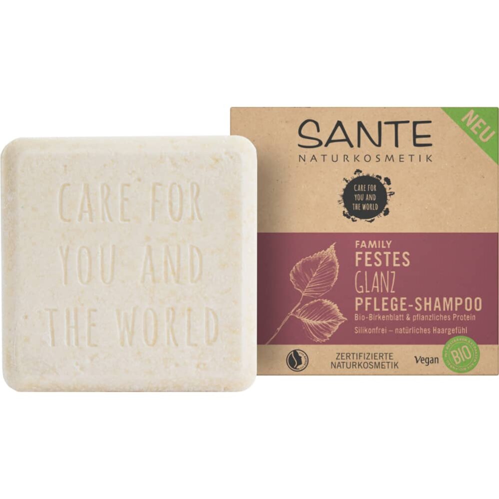 Твердый шампунь для ухода за волосами SANTE FAMILY Solid Shine Care с органическим экстрактом березы для нормальных и тусклых волос дарит обновленную мягкость и блеск. Натуральная эффективная формула в твердой форме особенно бережно очищает и обильно пенится.