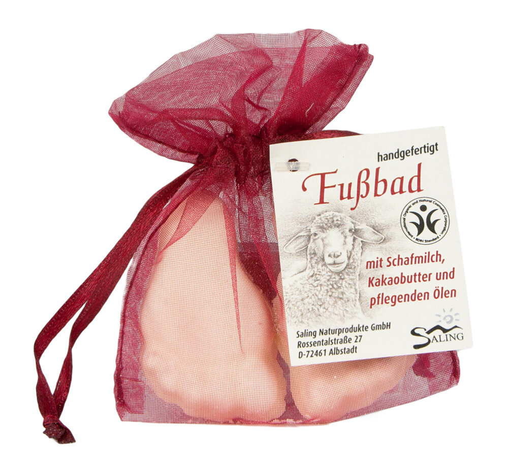 Ванночка для ног с овечьим молоком, маслом какао и питательными маслами в мешочке из органзы. Для мягкой и эластичной кожи.