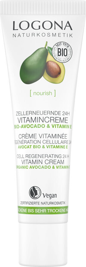 Витаминный крем LOGONA для обновления клеток кожи, обеспечивающий 24-часовое увлажнение, защищает кожу от воздействия окружающей среды и способствует клеточному обновлению. Экстранасыщенная формула с органическим авокадо и витаминами С и Е содержит особенно высокое количество омега-жирных кислот, что способствует полноценной регенерации кожи.