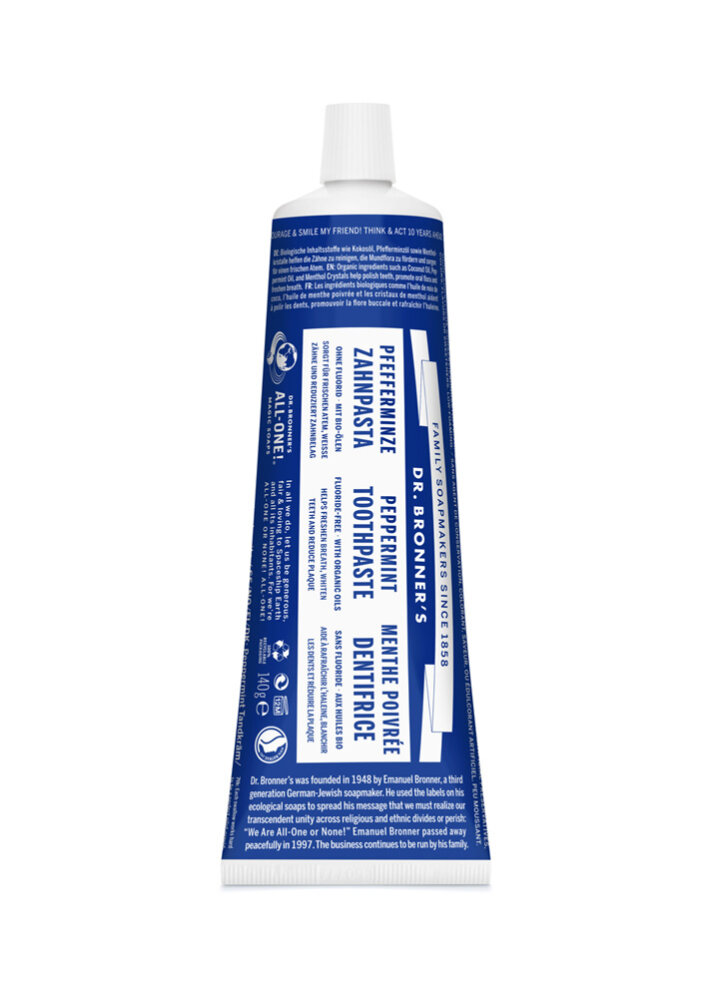 Попробуйте использовать зубную пасту Dr. Bronner’s All-One вместо натурального мыла 18-в-1 – детям особенно нравится вкус! Эффективная зубная паста Dr. Bronner’s с сертифицированными органическими ингредиентами, такими как кокосовое масло, кокосовая мука, эфирные масла и кристаллы ментола, очищает и ухаживает за зубами, деснами и языком, оставляя лишь приятное ощущение свежести.